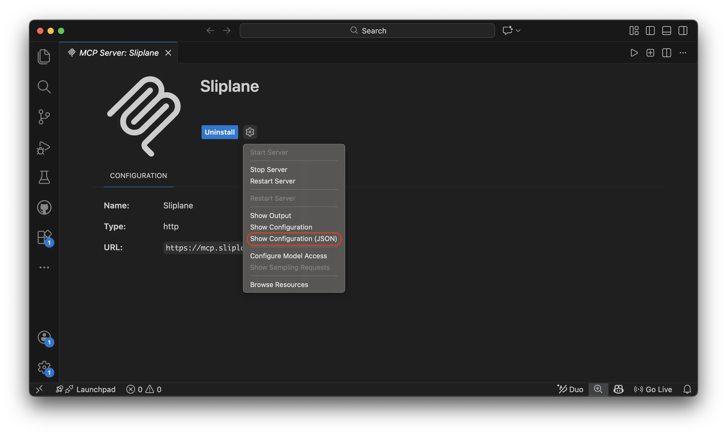 In VS Code, open the chat and ask something like: "List my Sliplane services". The model will use the MCP server to call the Sliplane API and show your services.